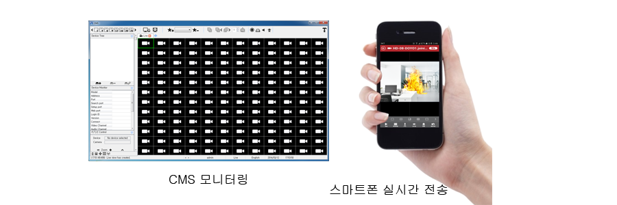 화재발생시 화원에서 발생하는 정보를 CCTV 일체형 불꽃감지기에서 수집하여 화재장면을 영상으로 저장과 동시에 IOT 기술을 접목하여 고객의 핸드폰으로 영상 및 문자 발송, 이메일로 화재 정보 영상을 발송하는 DVR 입니다.